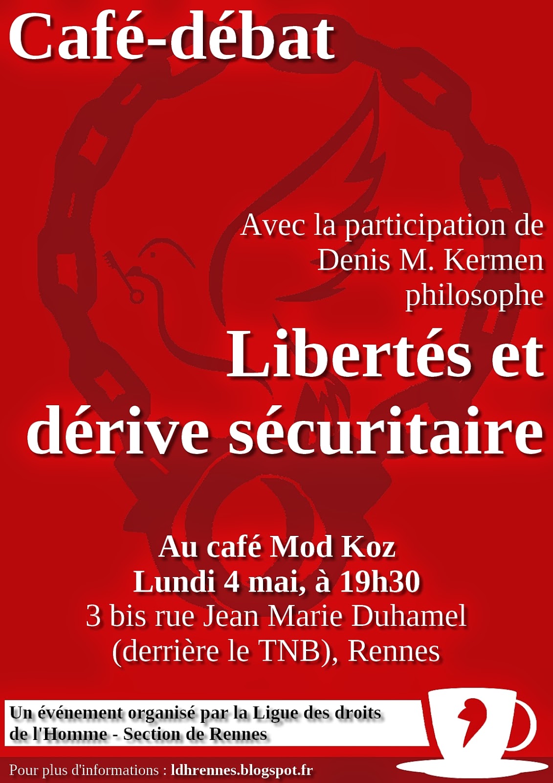 invite à un café-débat sur le thème "libertés et dérive sécuritaire" au